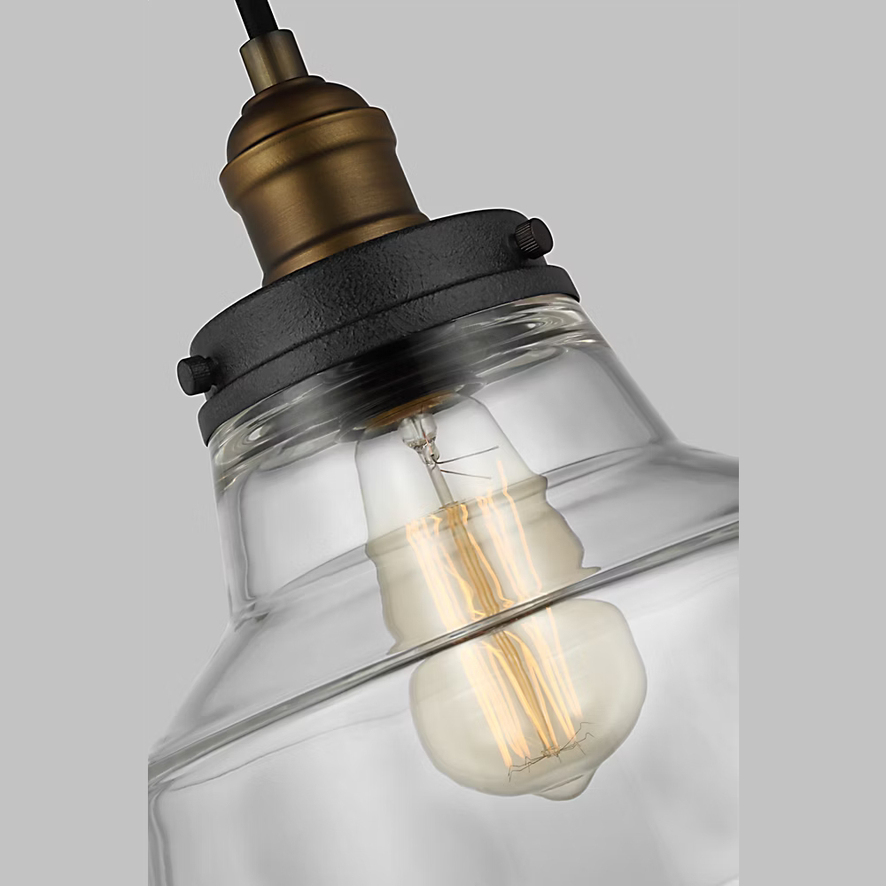 Baskin Mini Pendant with Bell Shaped Clear Glass Aged Brass