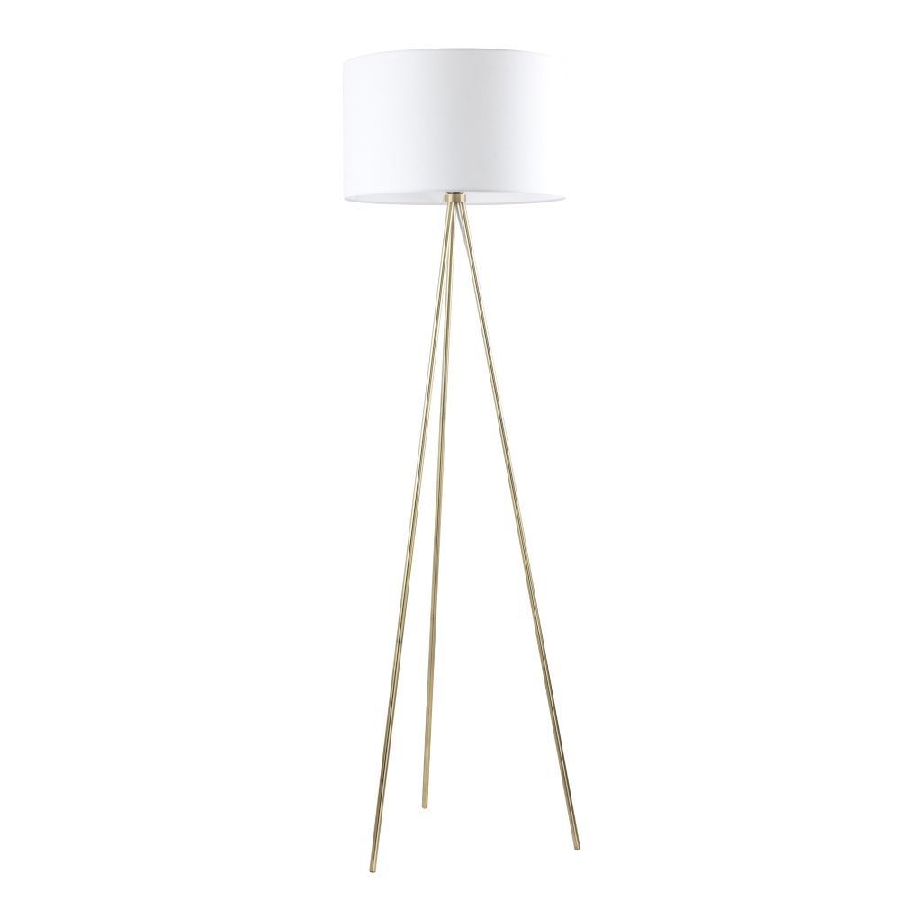 The Jambes Tripod Floor Lamp includes a classic fabric drum shade balanced by a slender antique brass tripod base, so you can enjoy this classic mid-century design in your living space.